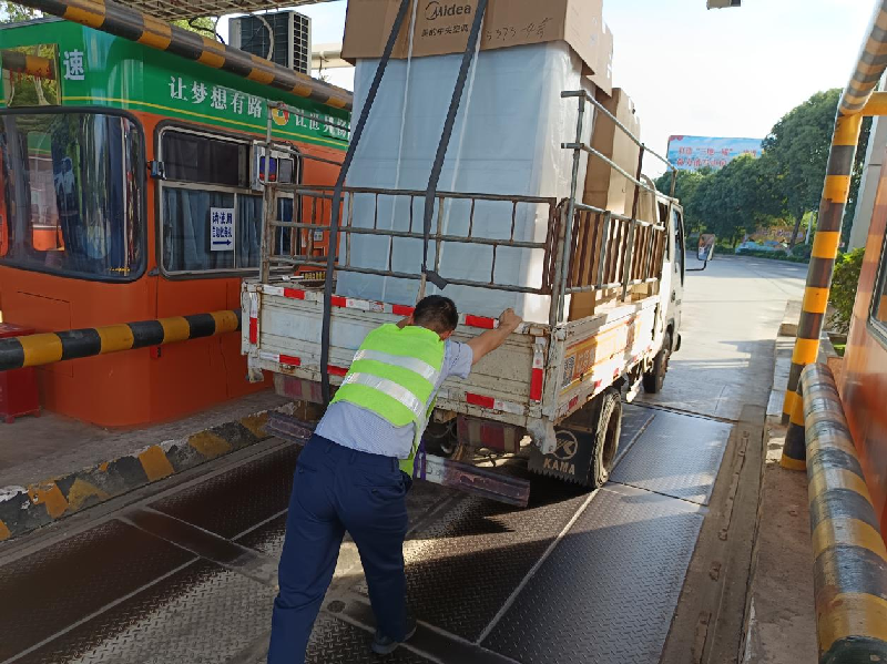 货车故障堵道口 收费员合力推车解困