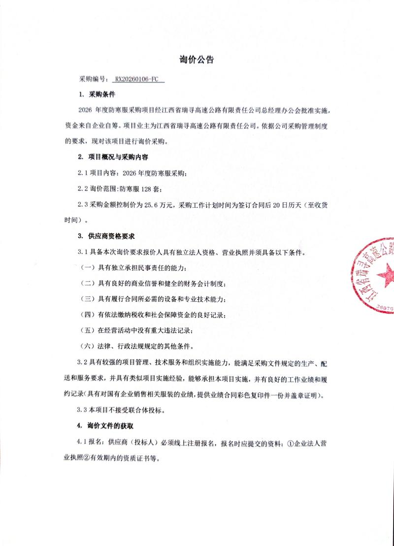 瑞寻高速路面标线修复工程询价价比选结果公示