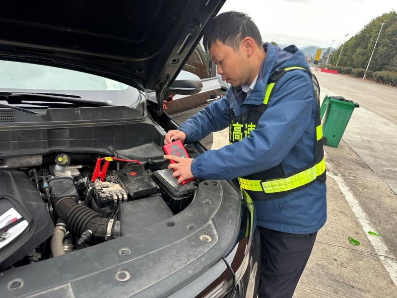 2月7日清晨,瑞金服务区工作人员在巡查中发现,一辆从广东返乡的SUV因电瓶亏电停滞在停车场,车主正焦急张望。工作人员了解情况后,立即取来备用的应急电源。熟练完成预充、启动等一系列操作后,伴随着发动机的轰鸣声,车辆重新启动。车主连连致谢,工作人员只是微笑回应:“路上注意安全,平安到家!”一句朴素叮嘱,宛如冬日暖阳,照亮一段归途。