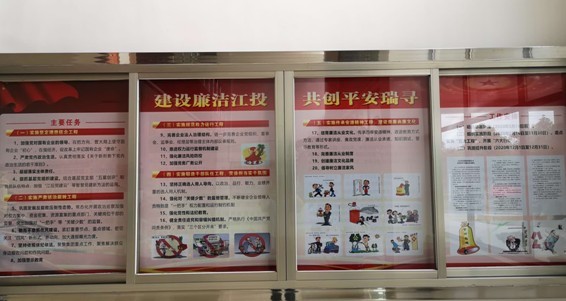 丰富宣教形式。对外,瑞寻高速利用沿线124公里路面电子屏的便利,24小时循环推送廉洁江投相关宣传短语。对内,利用宣传橱窗2块、灯柱宣传板30块、横幅3条、办公楼电子屏等阵地,营造深厚的廉洁从业宣传氛围。同时,不定时在公司微信群推送廉政宣传、反腐案件警示等内容。应用廉政约谈方式,促进党员干部自警自省自重自律。此外,公司依托内网构建“网络文化”,并使企廉网延伸到基层各单位。丰富的宣教形式,使员工随时随地都有一种“廉风”扑面的感觉。