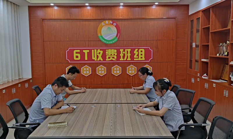 收费一班坚持每月至少召开一次班组例会,将组员日常当班过程中遇到的问题再会上与大家分享,探讨出解决问题的优秀做法,发挥班组团结一致、互帮互助的精神,为创建“6T”班组贡献自己的一份力量。