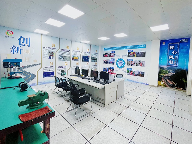 “匠心”机电创新工作室通过自主设计,设置了成果展示区、理论培训区、实操培训区、操作区四大功能区,配备办公电脑、台钻、台虎钳等设备设施,建立健全了信息采集、考核奖惩等管理制度,完善细化了劳模领衔、专业配合、职工参与的一体化管理体系。