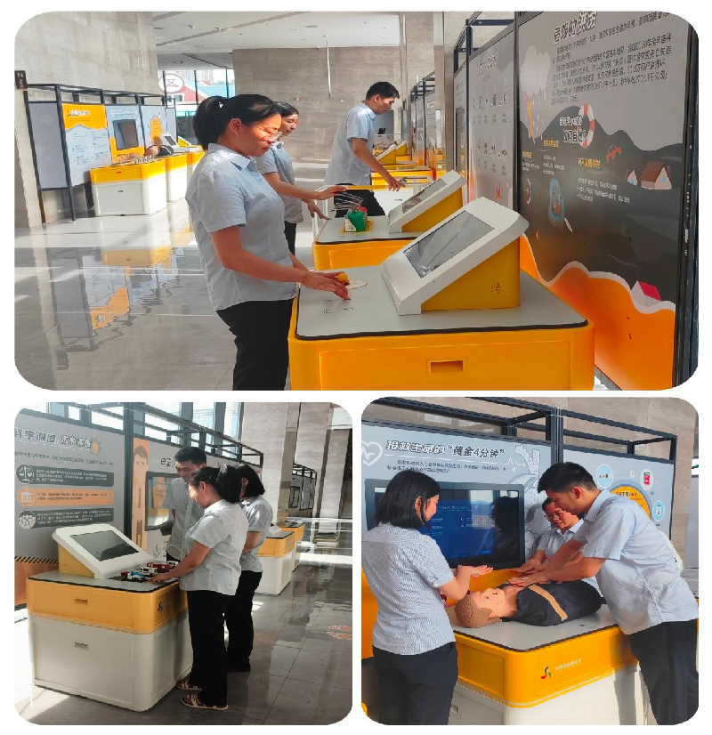 活动当天,班员们怀着对科技的好奇与向往,在讲解员的带领下,依次参观了各个展区。在消防安全区,大家系统地学习了不同类型灭火器的适用场景,并在模拟火场实操演练中,熟练掌握了“提、拔、握、压”的使用步骤,强化了初期火灾处置能力。在自然灾害应对展区,大家深入了解了暴雨、台风、地震等灾害的预警机制与防范要点。特别在地震模拟体验环节,在专业人员指导下,班员们快速掌握“伏地、遮挡、手抓牢”的逃生要诀,明确室内外安全躲避方位,切实感受应急响应的重要性。在急救技能区,借助人体模型,班员们逐一练习并掌握了心肺复苏的按压深度、频率及人工呼吸的操作规范,深刻体会了“黄金4分钟”在生命抢救中的关键作用,为应对突发急救情况增添“技能筹码”。
