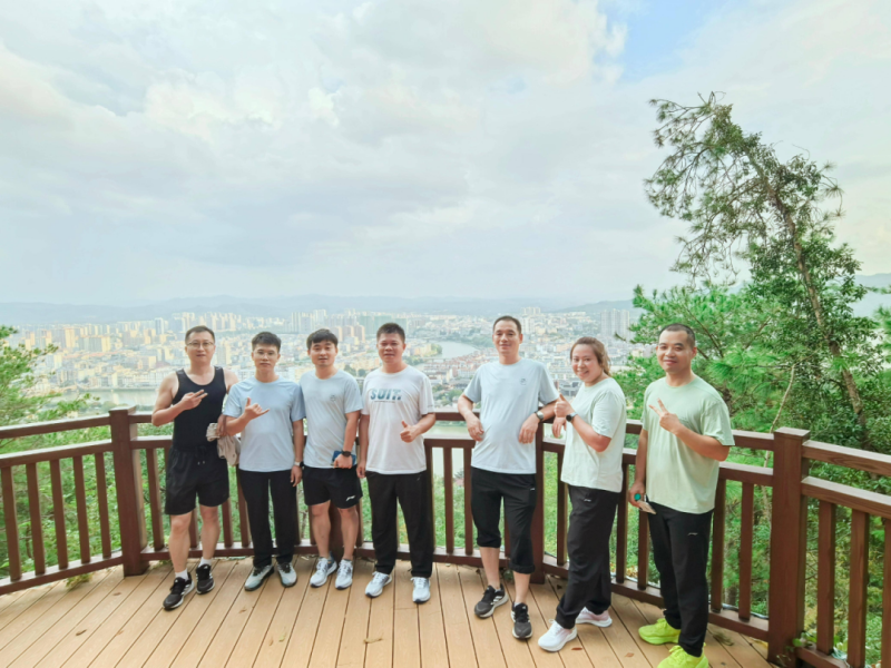 秋高气爽,天朗气清,大家的参与热情高涨,一路欢声不断,对即将展开的登山之旅充满期待。抵达岚山岭山脚后,班组长首先强调了安全注意事项,在随后的登山过程中,成员们精神饱满、步伐坚定,沿着蜿蜒的山道向上攀登。大家时而快步争先,挑战自我极限;时而缓步同行,相互扶持鼓励。山路崎岖处,团队成员之间“不抛弃、不放弃”的精神得以充分展现。一次次有力的援手、一句句暖心的提醒,生动体现了橙风养护班组团结协作、迎难而上的优良作风。当大家都立于岚山岭峰顶,极目远眺,层峦叠翠,风光尽收眼底时,登顶的喜悦冲淡了攀登的疲惫,大家在青山之巅合影留念,记录这一难忘时刻。最后,班组在山下组织了简短的交流分享会,大家畅谈参与感受,并一致认为,此次活动不仅锻炼了身体素质、磨砺了个人意志,更在协作中深化了同事情谊,提升了团队的归属感和战斗力。