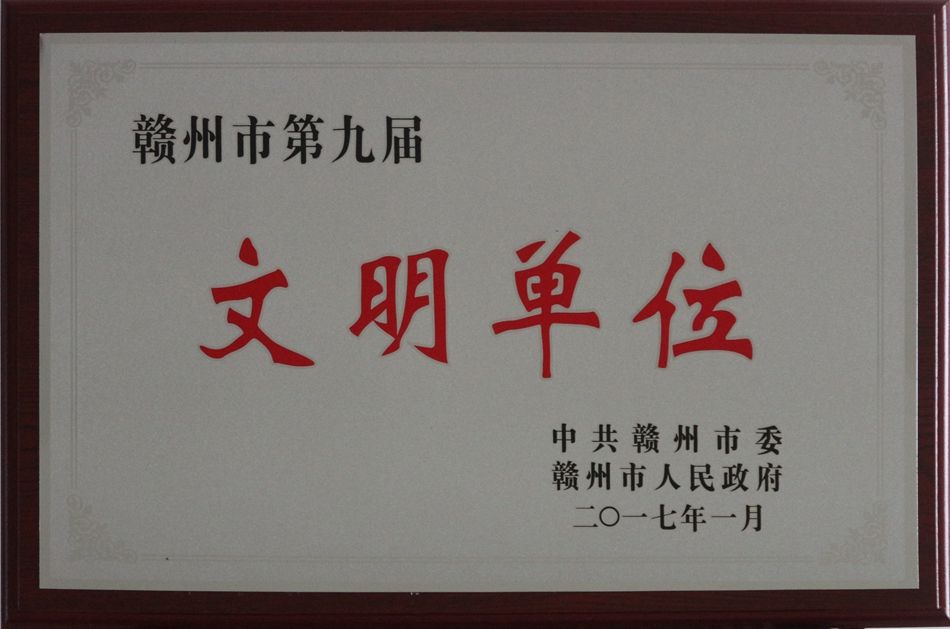 公司荣获“赣州市第九届文明单位”称号