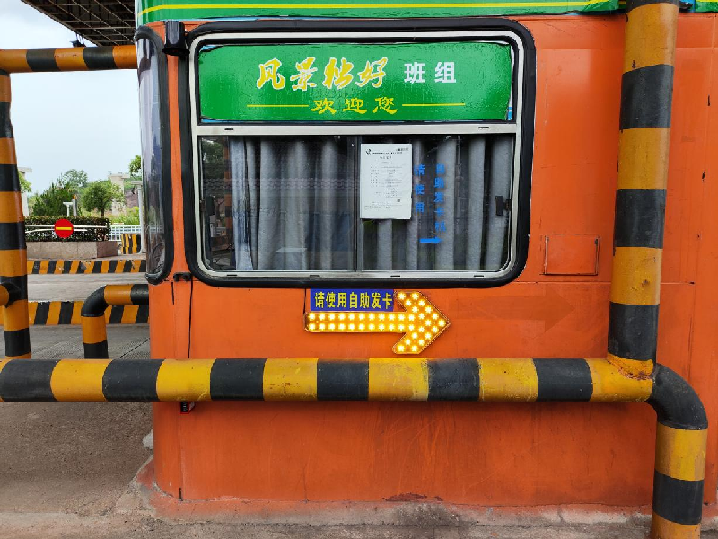 为更好匹配收费站的自助化收费模式,进一步提升服务品质,减少司乘在岗亭窗口的等待时间,在自助车道加装了一款“语音提示器”。该装置通过红外感应器检测来车,当车辆驻留在岗亭窗口前,箭头引导灯亮起,语音播报器同步播报“自助缴费,请往前开”或“自助取卡,请往前开”提示词,引导司乘人员前往自助缴费机缴费或自助发卡机取卡。该装置有效减少了司乘在窗口的等待时间,降低了工作人员穿越车道的安全风险以及劳动强度,提高了车道通行效率,增强了司乘通行体验。