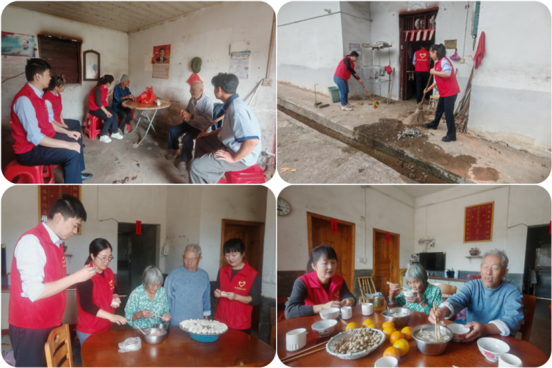 活动中,志愿者们带着精心准备的食用油、牛奶、水果等生活物资,逐户走访老人家庭。在老人家中,他们贴心问候,细心叮嘱,并主动帮忙清扫院落、整理物品。随后,志愿者们取出提前备好的新鲜饺子皮和肉馅,与老人们围坐成一团开启了温馨的“包饺子时光”。老人们吃着热气腾腾的饺子,脸上洋溢着幸福的笑容,感动地说:“平时家里冷清,今天你们不仅送来东西,还陪我们聊天包饺子,真是太暖心了。”