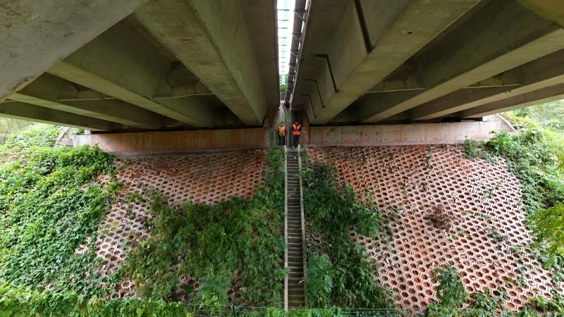 “橙”风破浪,精准排查“除病根”。班组人员身着橙色工装,化身“桥梁医生”,重点对跨水域、高边坡桥涵进行拉网式检查。他们严格对照要求,细致勘查支座、伸缩缝、桥墩、边坡等关键部位,运用无人机等技术辅助,实现“人巡+机巡”全覆盖,精准定位潜在隐患。