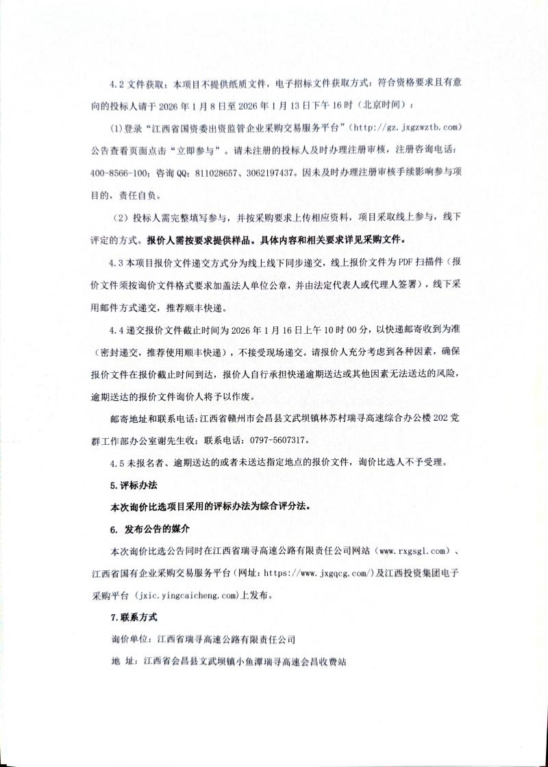 瑞寻高速2026年度防寒服采购询价公告