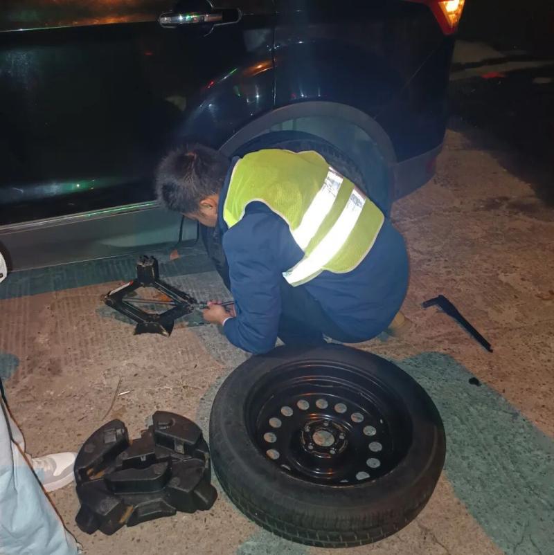 凌晨时分的筠门岭收费站,寒意袭人。一辆爆胎的越野车停靠路边,当班人员发现后立即小跑上前,熟练地摆放安全锥、支起千斤顶、拆卸旧胎、安装备胎……大家配合默契,动作利落,呼出的白气在灯下交织。不到十分钟,备胎已换好。临行前,当班人员细心提醒:“前方两公里有修理厂,换条新胎再上路,更安全。”司机摇下车窗,连连道谢。